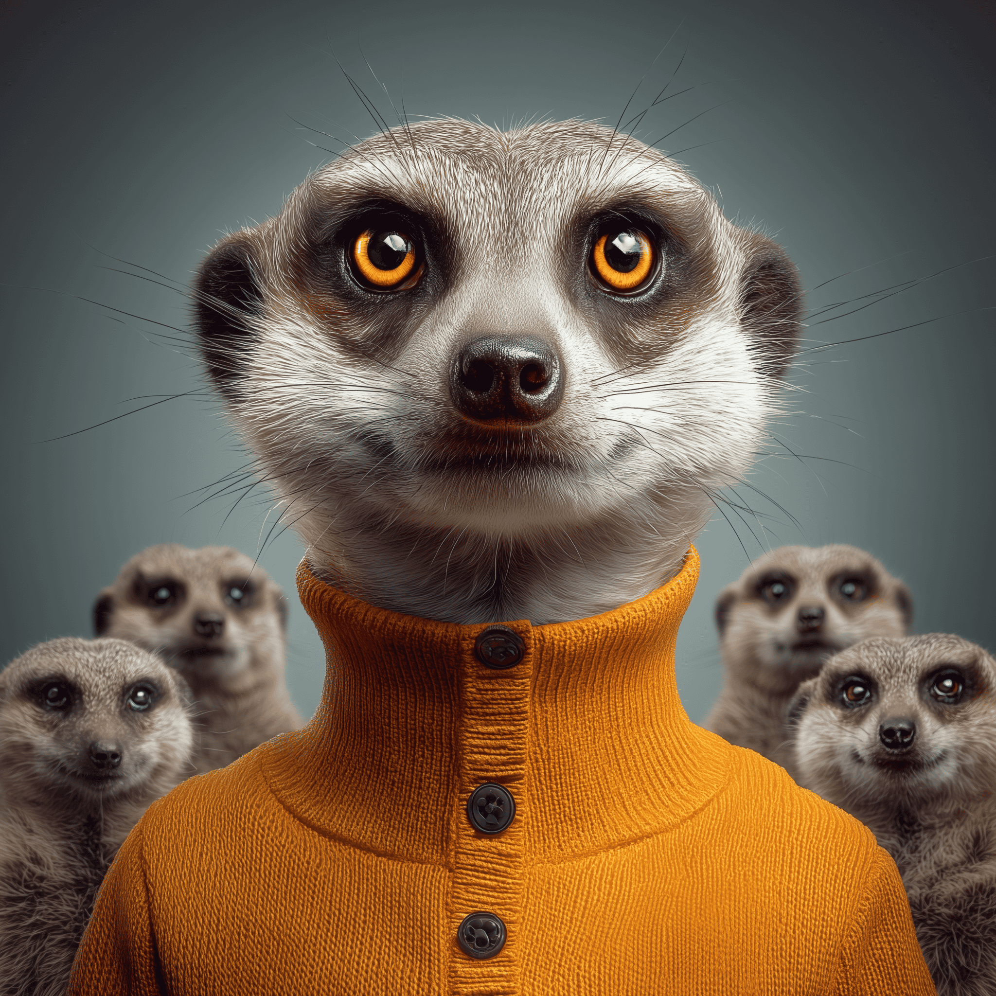 “The Watch” is a celebration of confidence, connection and quiet courage. At the heart of the mob, a lone meerkat stands tall, buttoned-up, unblinking, an emblem of alertness with style to match.